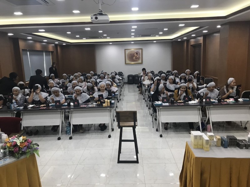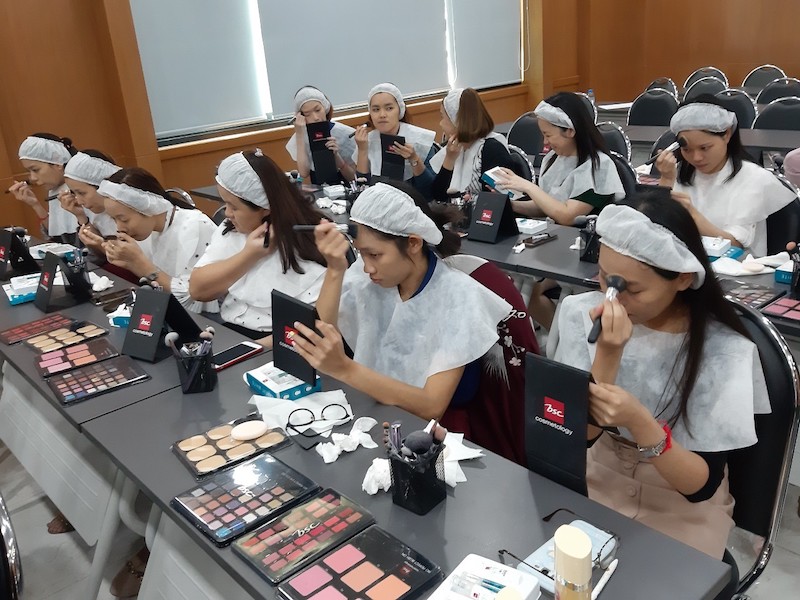 ในช่วงบ่ายได้มีการจัดคอร์สอบรบการแต่งหน้าให้กับพนักงาน โดยมีวิทยากรจาก BSC Cosmetology เป็นผู้สอนเทคนิคการแต่งหน้าเพื่อเสริมสร้างความมั่นใจให้กับพนักงานทุกท่าน บรรยากาศการอบรบเต็มไปด้วยความสนุกสนานและเสียงหัวเราะ